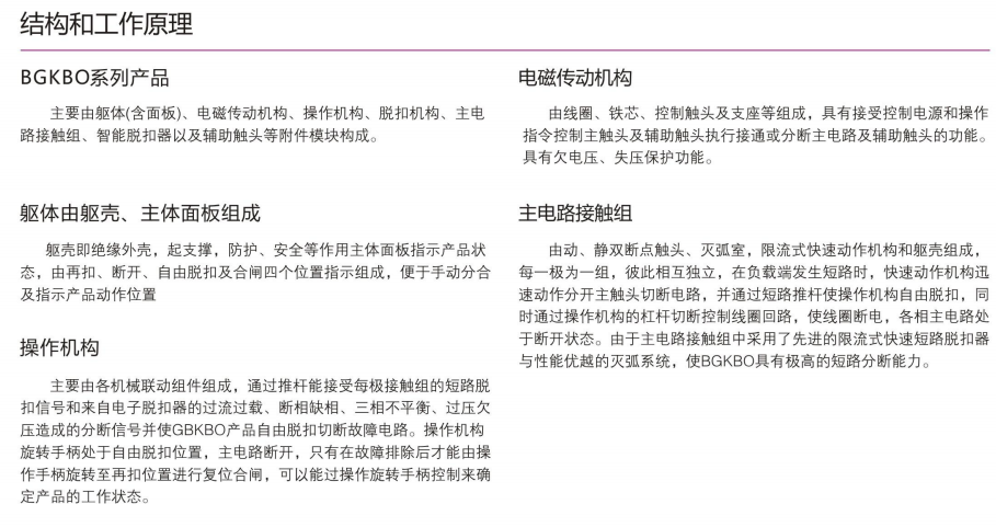 BGKBO主要用于交流50Hz(60Hz)、額定電壓至380V,電流自0.16A~125的電力系統(tǒng)中接通、承載和分?jǐn)嗾l件下包括規(guī)定的過載條件下的電流,且能夠接通、承載并分?jǐn)嘁?guī)定的非正常條件下的電流(如短路電流)。